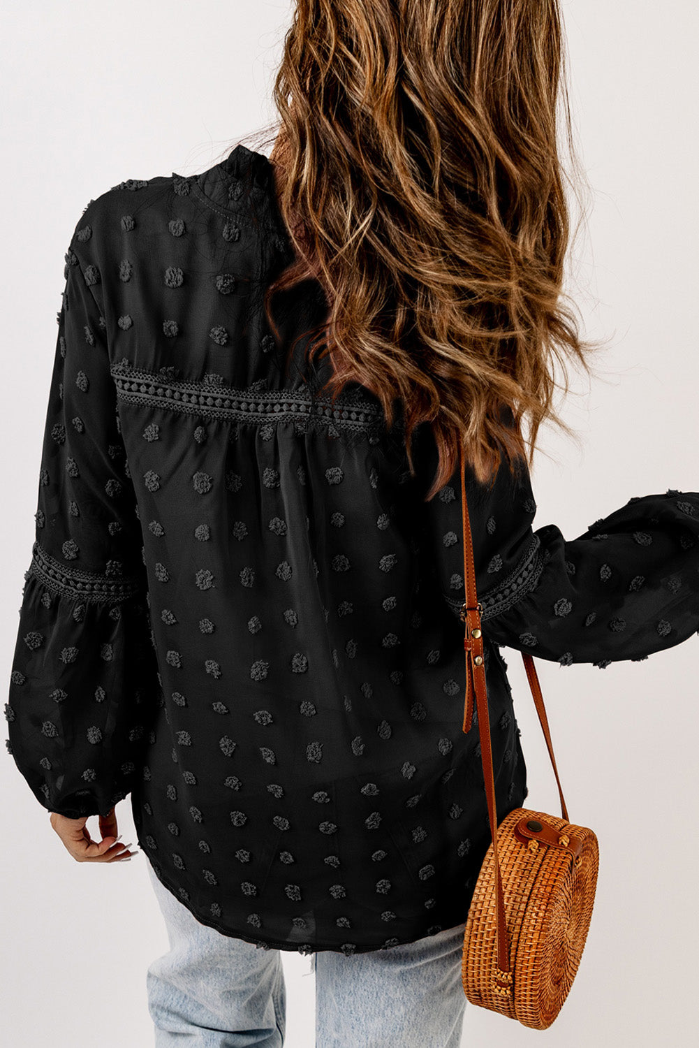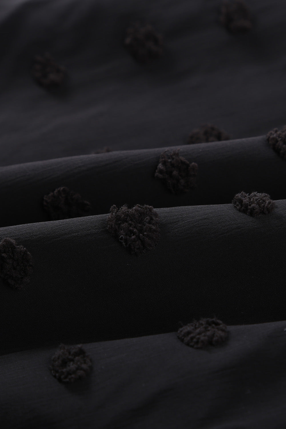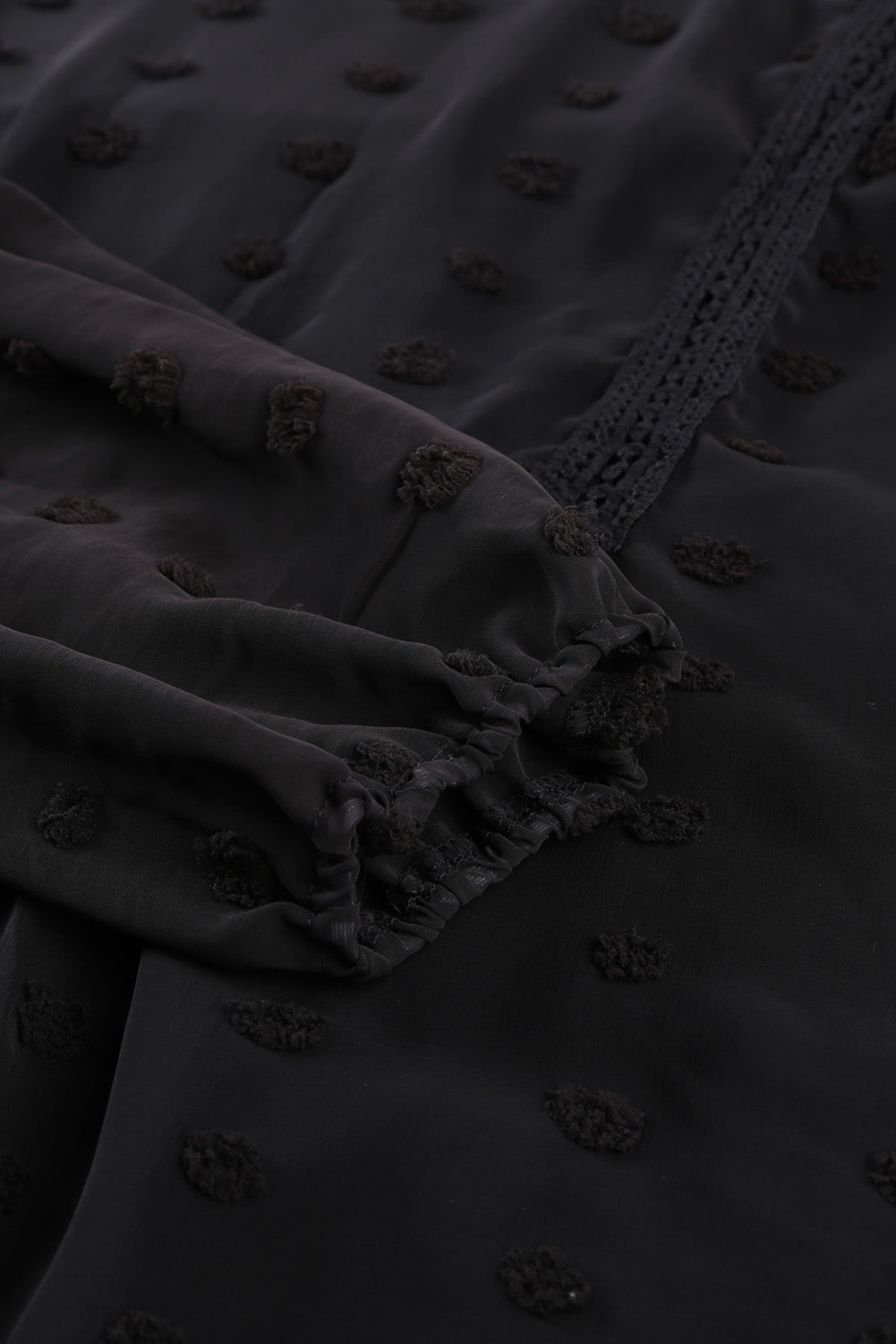 Black Swiss Dot Split Neck Ruffle Babydoll Blouse