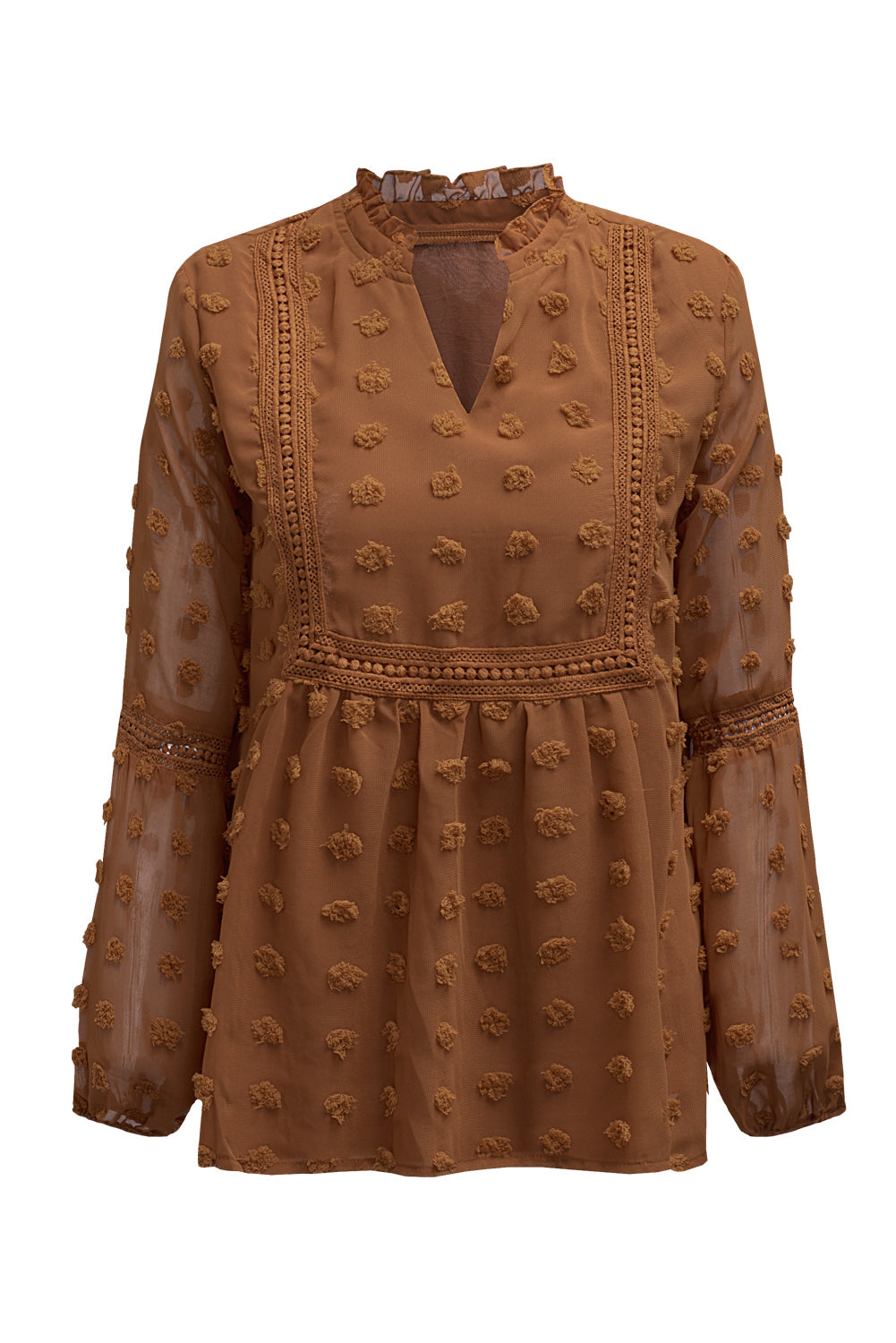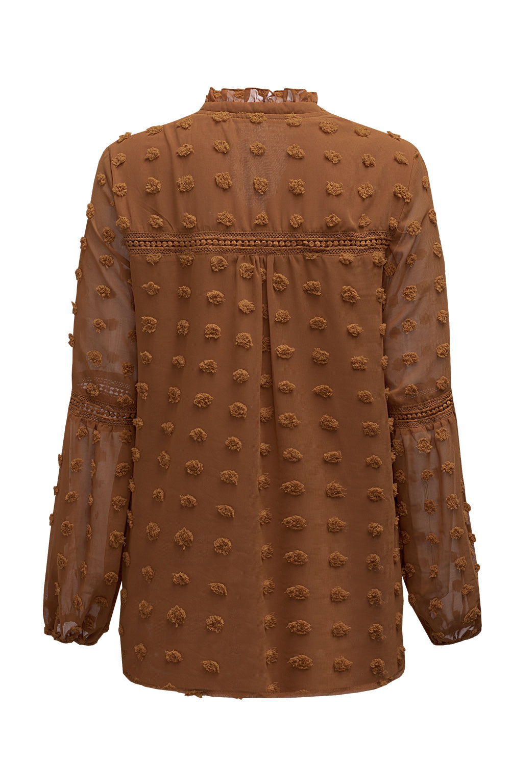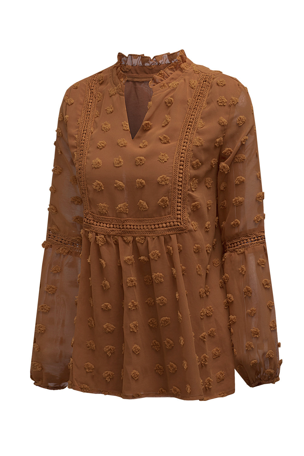 Black Swiss Dot Split Neck Ruffle Babydoll Blouse