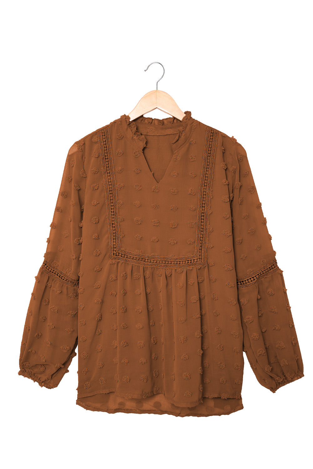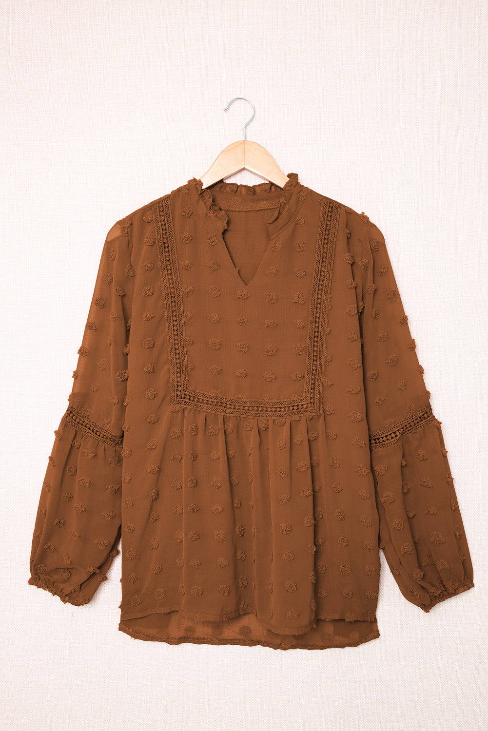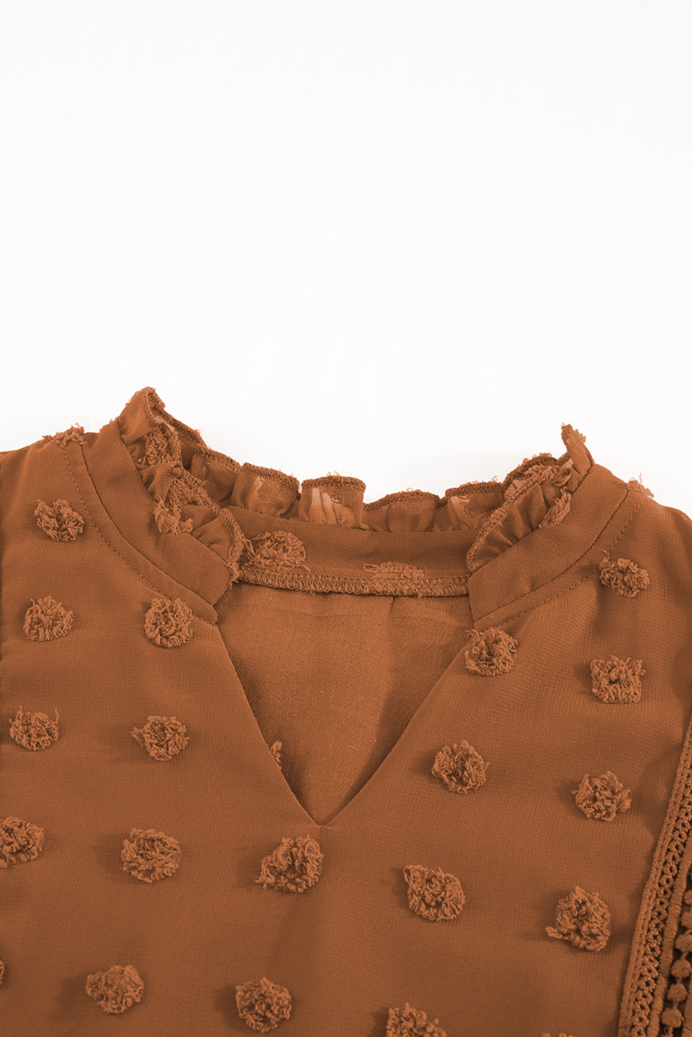 •The ruffled split neck design is so special and groovy