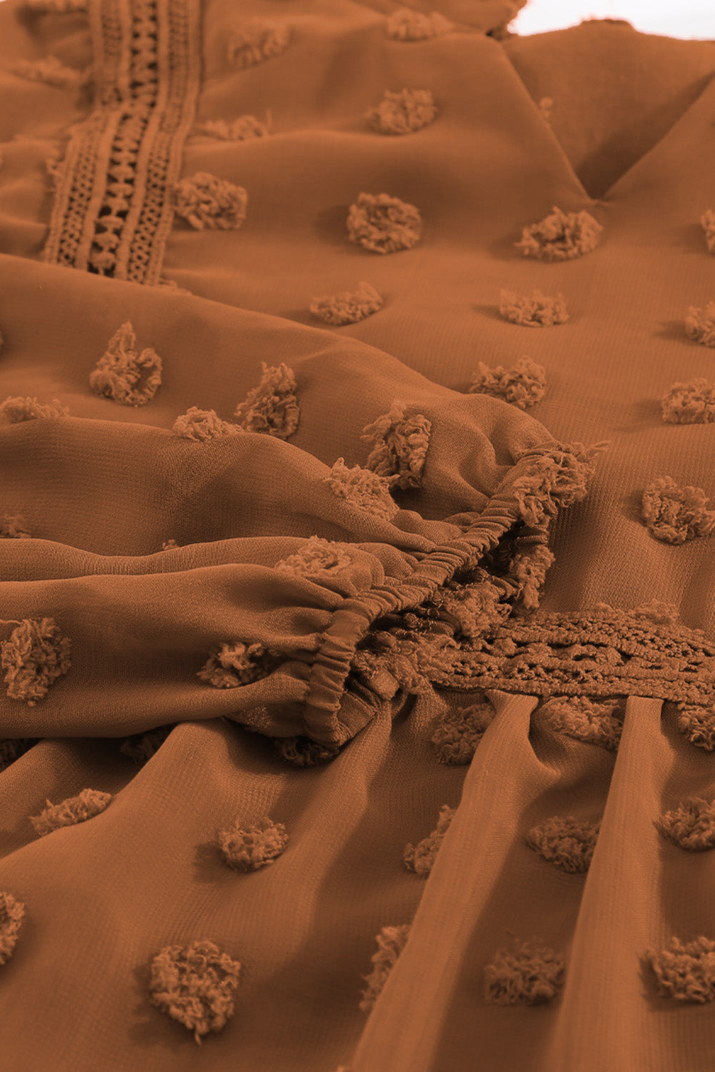 •The detailing of raised fuzzy polka dot has a great tactile appeal