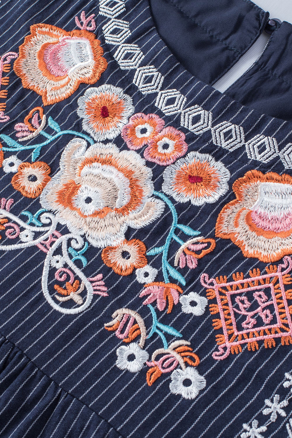 - With its vibrant striped print and delicate embroidery details, this mini dress is sure to turn heads and make you stand out in a crowd