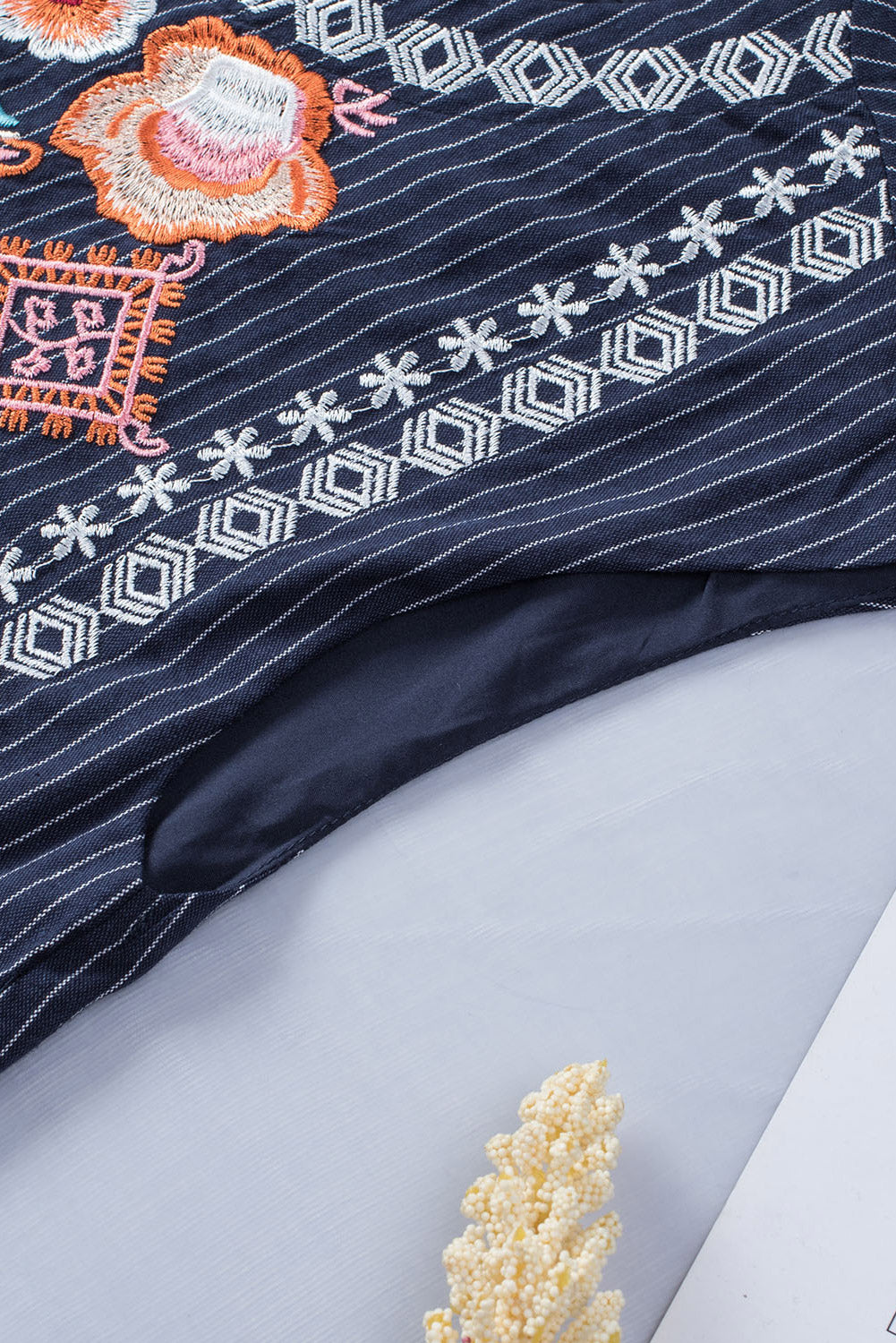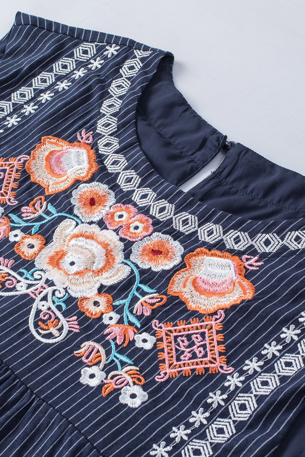 - The Embroidered Striped Print Sleeveless Mini Dress is a stunning and unique piece that is perfect for any summer occasion
