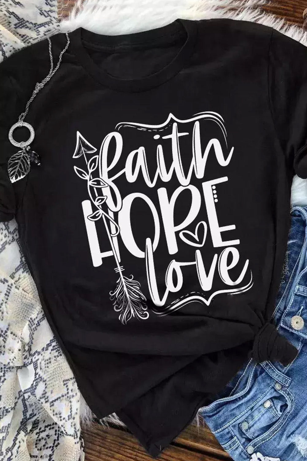•Faith Hope Love Graphic Print Short Sleeve T Shirt