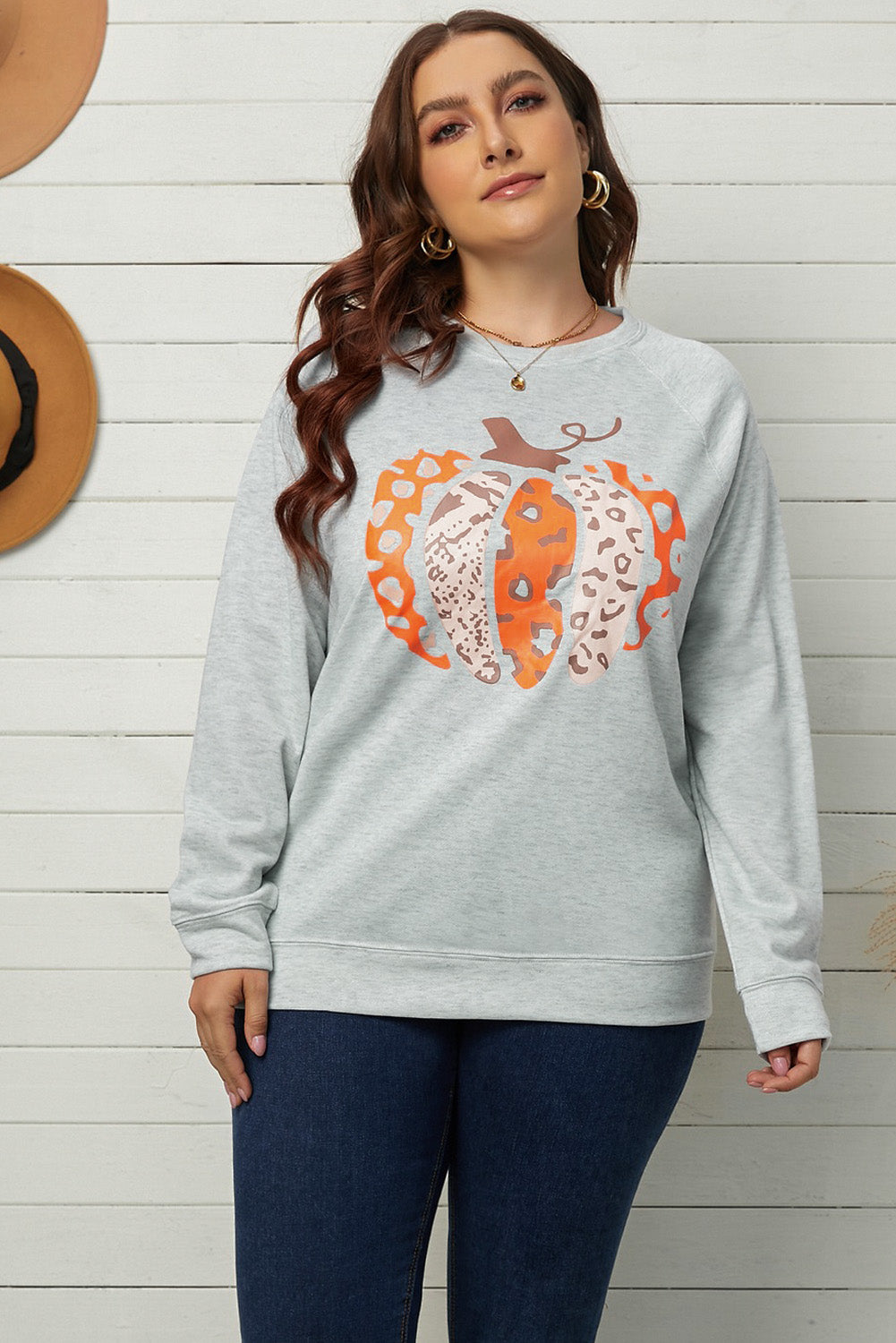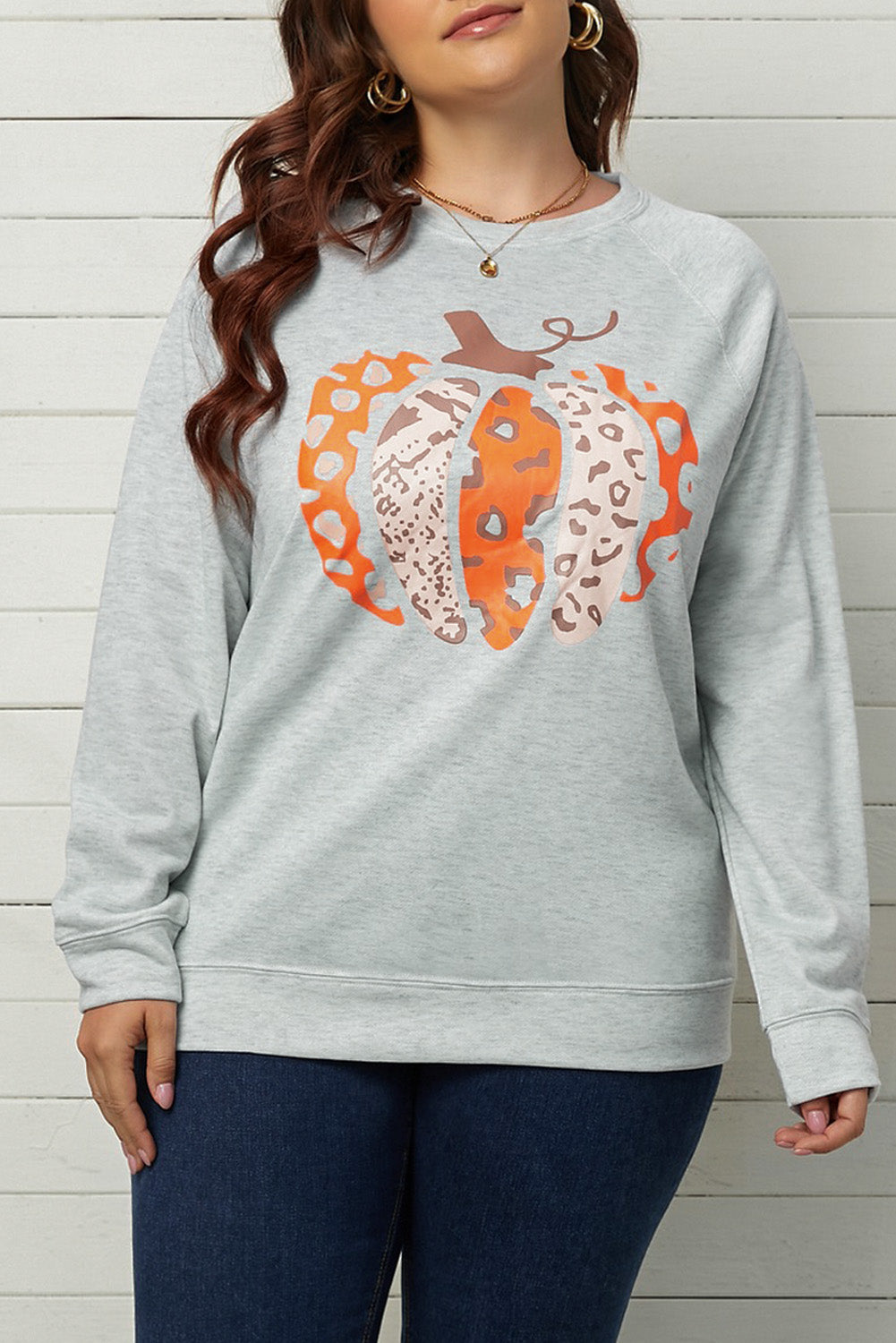 Halloween Pumpkin Leopard Print Plus Size Sweatshirt