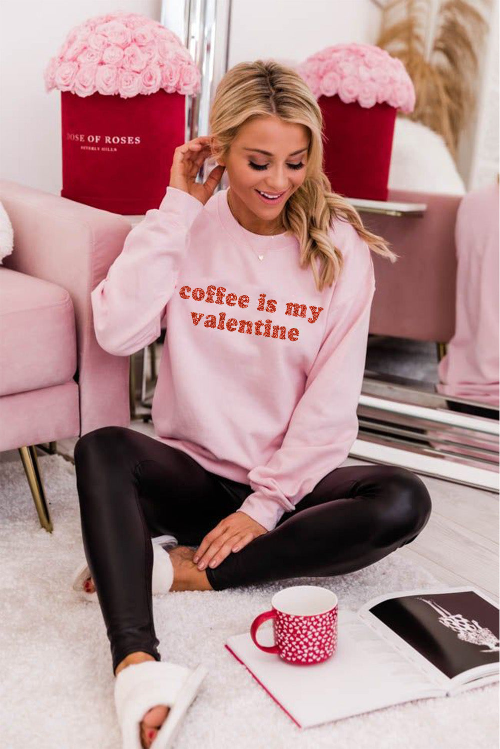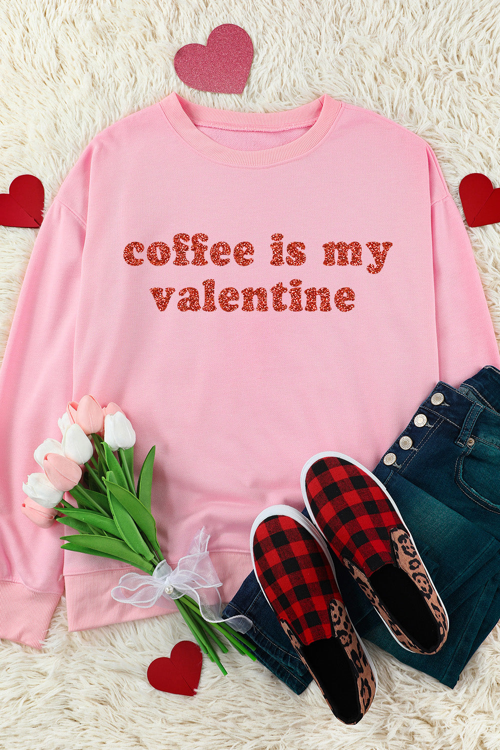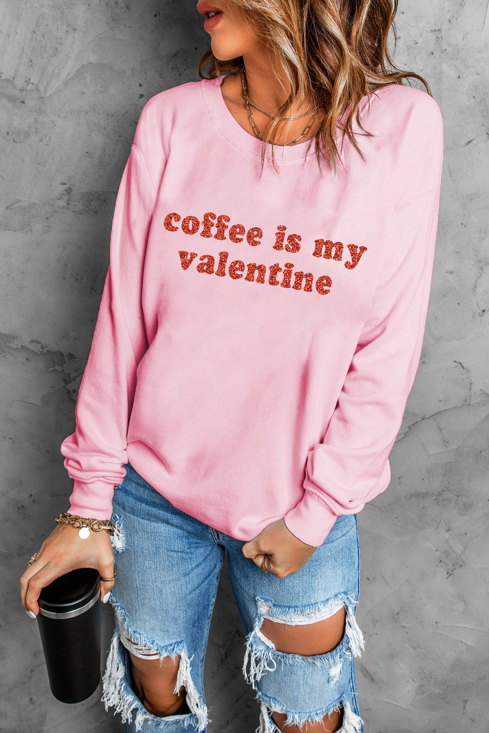 Sequined Coffee is my Valentine Graphic Pullover Sweatshirt